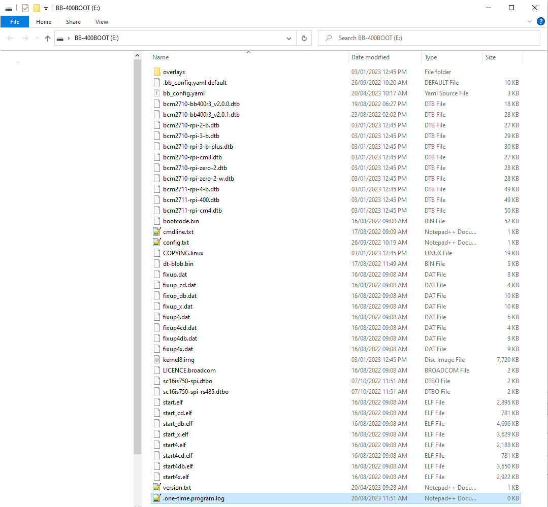 After the new Removable HDD has appeared, open the boot partition in file explorer and copy the .one-time-program.log to your desktop (or any location on your PC):