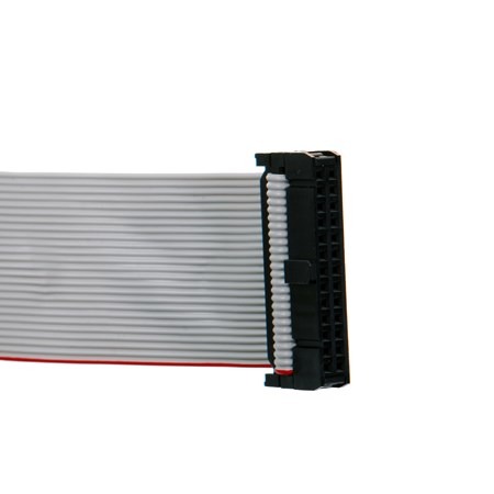 Female 25 pin D connector on a standard height bracket with 300mm long fly lead to an IDC 2×13, 26 way ribbon header