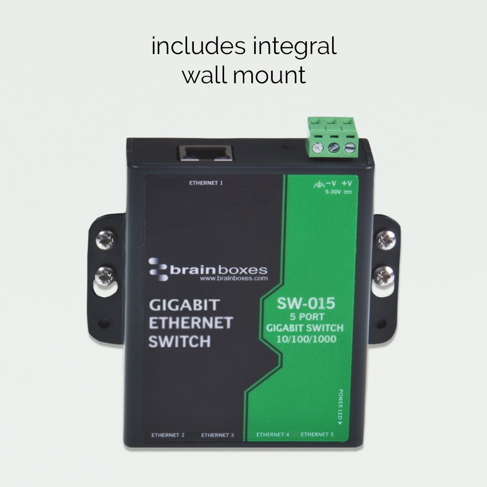 As with all Ethernet Switches in the SW range – the SW-015 can be powered from +5VDC to +30VDC, and has a wide operating temperature range (-10ºC to +60ºC /-14ºF to +140ºF)