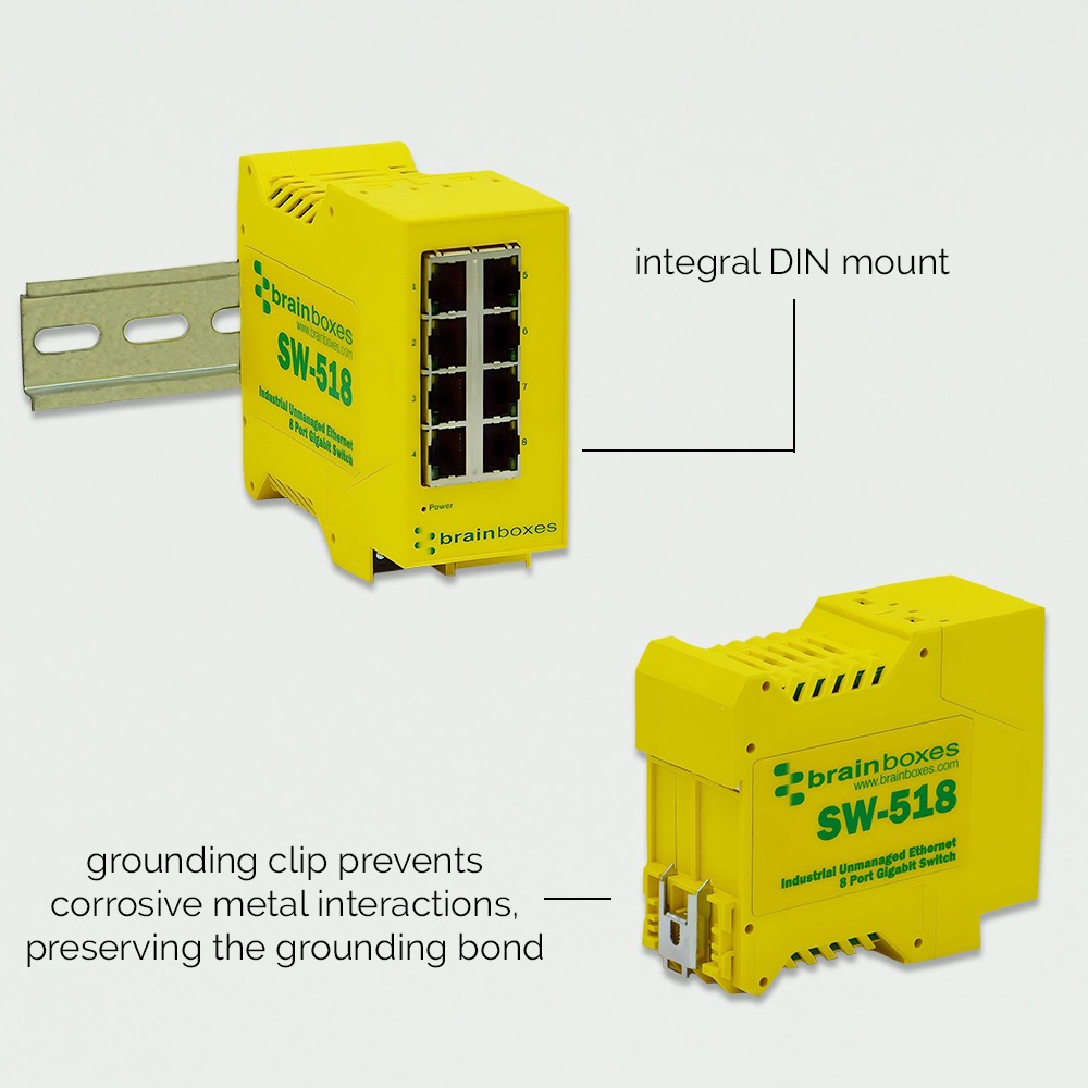 SW-518 Industrial 8 Port Gigabit Ethernet Switch DIN Rail Mountable