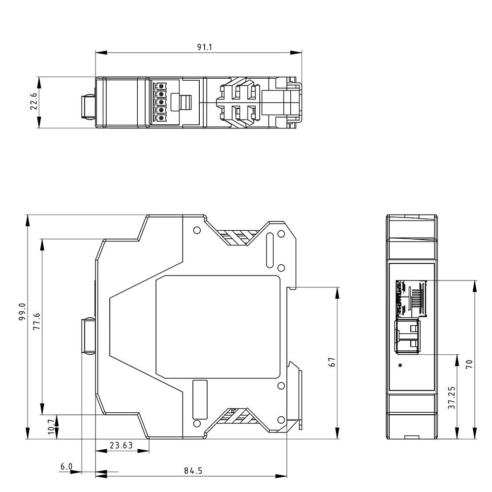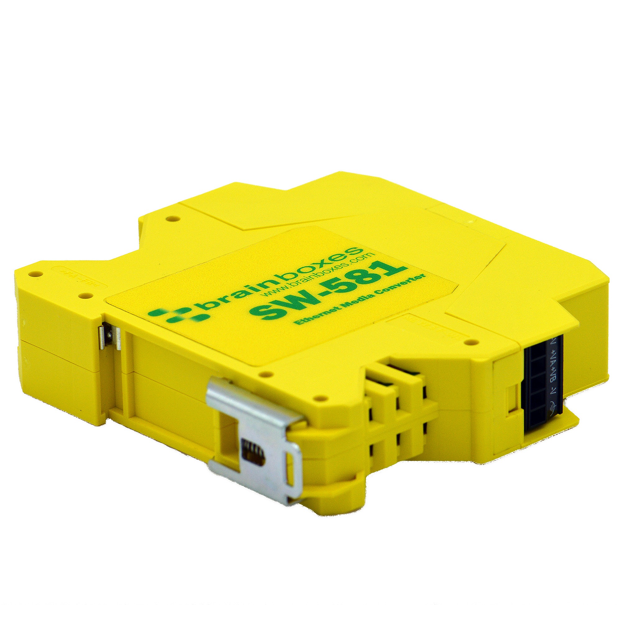 Galvanically Isolated Ethernet brainboxes-ed-593-front-panel-ethernet-port-status-leds. Automatic detection of data transmission speed: 10/100/1000 Mbps. Industrial temperature range of -40°C to +80°C (-40°F to 176°F) and dual input redundant power supply with wide voltage range means it can be powered from USB or on the 24V factory floor. Power terminal is removable with numbered pins for easy wiring. Power consumption is optimised based on the status of the link device. No software required. Ideal for factory floor, in vehicle and marine applications.