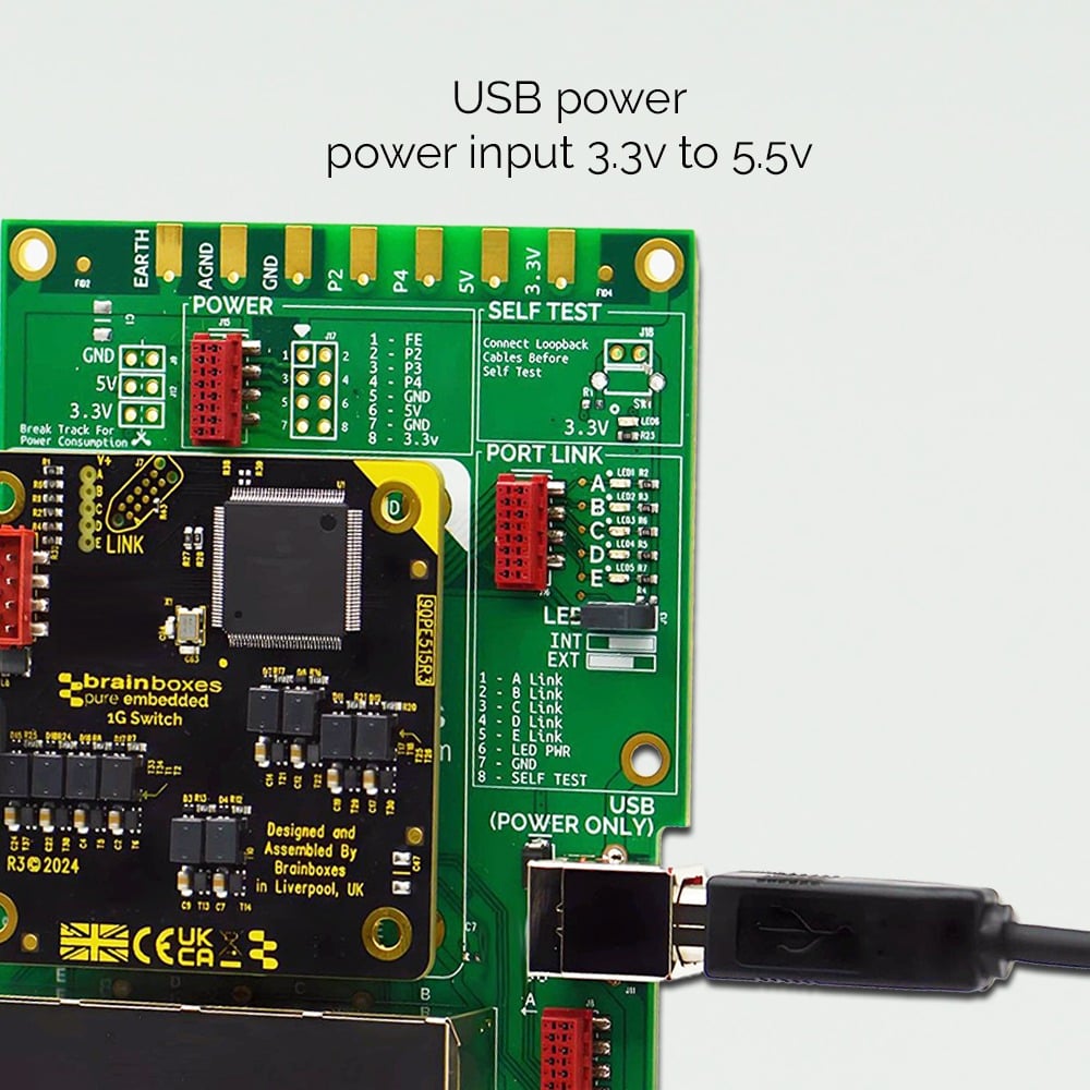 Pure Embedded Industrial Gigabit Ethernet Switch Evaluation Kit – allows easy access to all features of the PE-515* and allows for further testing and debugging within a prototype system before any commitment to custom fixtures or designs is made.